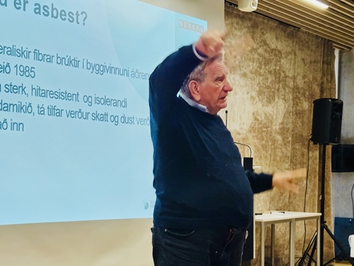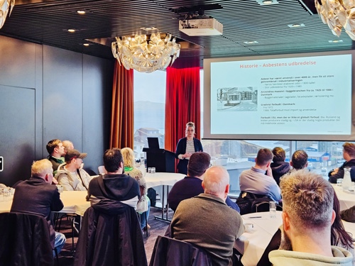 Felags fyri øll tiltøkini var eisini, at Rikke Juel Lyng, seniorkonsulentur á Teknologisk Institut, helt fyrilestur. Hon greiddi frá, hvussu arbeiði við asbest eigur at vera skipað á ein tryggan hátt - bæði í sambandi við ítøkilig arbeiði og í sambandi við útboðsfyrireiking, krøv og ábyrgd.