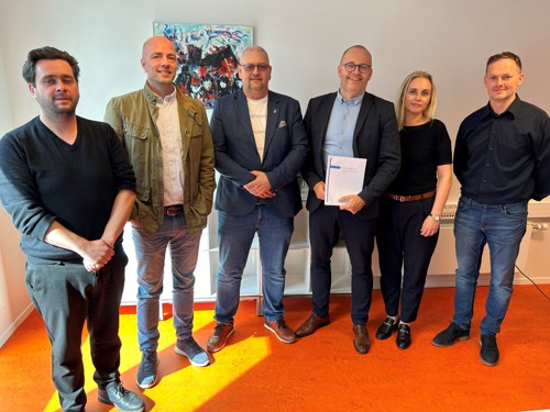 Á myndini eru: Brandur í Funningsstovu, Anly Sandberg Petersen, Rúni Arge Mortensen, Jan Højgaard, Djóni Nolsøe Joensen, Jórun Gardar og Janus á Ryggi.